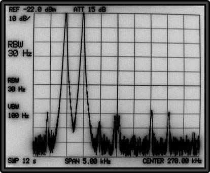 本回路は、アナログSWで搬送波により変調信号を完全にスイッチングしているため、出力では高調波を発生しています。よってこのタイプは出力回路に必ず高調波を除去するためのフィルター(LPF又はBPF)を入れる必要があります。AD8402はACN動作を行うための手足となる回路です。ACN回路を無視すり場合はAD8402の入れ替えで471の固定抵抗を+5VからそれぞれR10とR11へ接続しす。 <調整> @ 入力信号=OFFの状態で、OUT端子にてキャリア漏れが最小となるように、VR3とVR4を交互に調整する。 A 入力信号(変調信号)を1Vpp入力し、OUT端子にて逆サイド信号が最小となるように、VR1とVR2を交互に調整する。 逆サイド抑圧は、温度依存によりベスト調整しても数値は悪化してきます、これを最小限に防ぐ手法として、R8又はR9のラインにサーミスターを挿入して補正することも可能です。サーミスターの温度極性は決まっていますから、システムとしてどちらの温度極性となっているかを確認して、R8側かR9側かを決める、但し、何度も繰り返し確認でサーミスターのダンピング抵抗を決めて最適な温度勾配を抽出する必要があります。神経質な人がやる作業です。 74HC4053出力にてU列信号からの変調信号とL列信号からの変調信号を加算又は減算することによりSSB(LSB/USB)信号が生成されます。 |