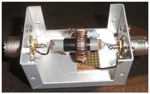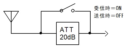 @送信機からの送受信号で、ANT入力に20dBのATT をON/OFFする回路が必要となる。受信機内部に 装着する。 |