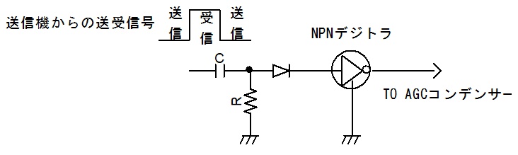 上の例ではAGC電圧が+B値で最大感度であったが、AGC電圧が0で最大感度である受信機の場合は、特定の期間(C/R)でAGCコンデンサーを0に放電させる必要がある。この場合は![]() |