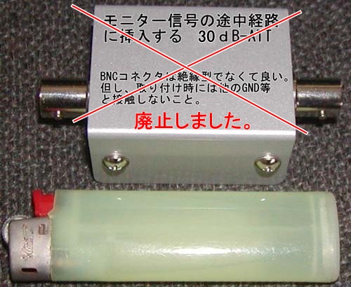 | エアー・モニター専用の信号としてアンテナ直前のPick-UP検出器から取り出し、必要なレベルで受信機へ供給する。モニター信号は十分なアイソレーションを確保する必要があります。 一般的に、ANT=ダミーロードでの受信機出力(オーディオ信号)とANT=実空中線で発射した時の受信機出力とで、各種測定器で確認比較すると差異が出ます。これは各ブロックのシールドとアイソレーションの手法で随分異なってきます。これとは別に回り込み現象によるものは別の要因となります。確認の仕方としては、実空中線で電波発射した時に、受信機のANT入力をシャント状態にし、この時のSメーターの振れ値(ぞくに幽霊電波と称するヤツです)と、入力をオープンにし、実エアー・モニター信号でのSメーターの振れ値、この比が大きい程、理想的なエアモニターとなります。 Pick-UP検出器内部に45dBATT、ここから当初、外部(途中経路)に30dBATTを付加していたが、止めました。直接受信機(内部20dBATT)へ供給。 モニター信号は、S9+30〜40dBが最適です。可能な限り受信機入力へは大入力がよろしいです。送信パワーにもよりますが、Pick-UP検出器内部のATTのみが良いです。但し、受信機内部には、最低20dBATT以上は設けるべきです。この状態で1KW送信でS9+35dBとなります。 |