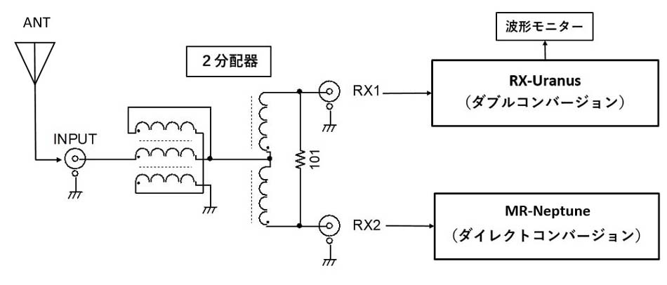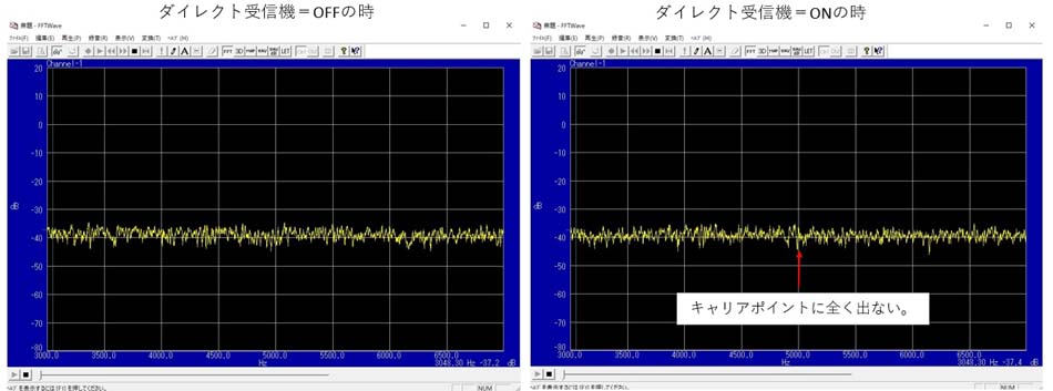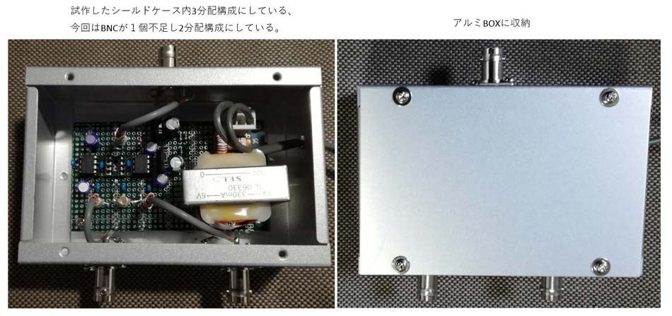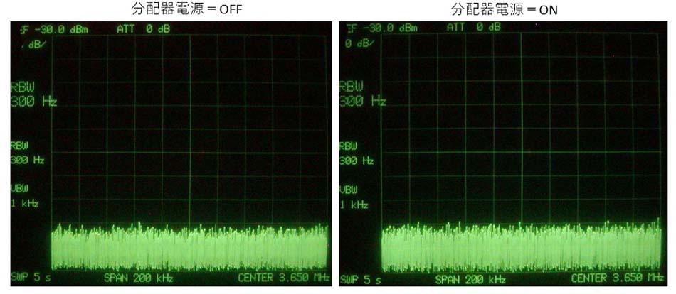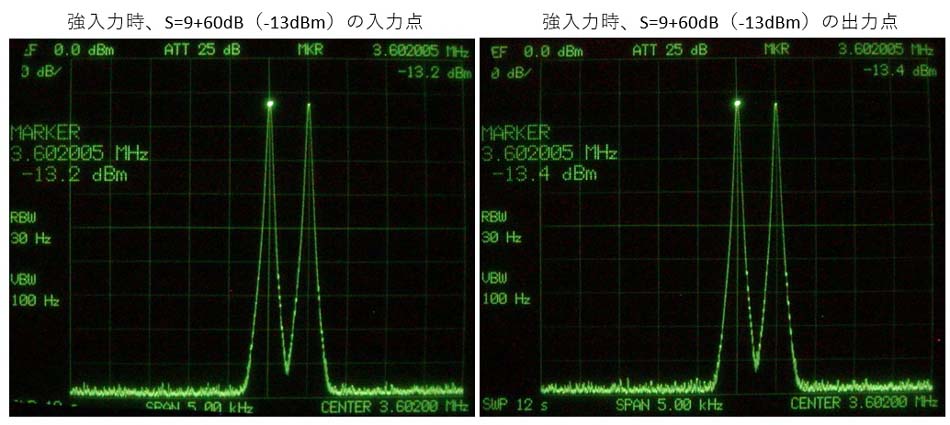 現状、受信機の分配器としてはPassive分配で2分配しています。3dB減衰は我慢出来ますから、そのまま使用していますが、分配端子に自作したダイレクト受信機を接続した場合、ダイレクト受信機のキャリアがANT端子へリークするため、もう一方の受信機で波形モニターした場合に、キャリアポイントに20~30dBで現れてくる、これが受信した電波(相手電波)のキャリア漏れなのか、又送信した場合、自分の電波のキャリア漏れの確認が出来ない。そこで、ローカル局は同じダイレクト受信機を分配器へ接続しているが、波形モニター上には出てこないと言われ、確認したところPassive分配ではなくActive分配(軍用の分配器)を使用されていることが判明し、何とかPassive分配からActive分配へと移行する必要があり、色々検討してみました。現在2分配構成で運用している構成図です。![]() RX2からキャリアリークがRX1へ漏れ、波形モニター上に出てくる。そこで最終的には下図のような運用を行いたいと考えています。 ![]() 分配器をActiveで構成するため挿入損失は犠牲にすることなく0dBとすることが出来る、要求される項目は、強入力時の歪/周波数特性(HF帯の30MHz)/NF値 これ等が満足されるものが要求される。秋月に面白そうなIC(6dBビデオアンプ50MHz帯域)があったので使えそうか確認してみた、NFが全く話にならず、その他はOKであったが、そもそもビデオ出力1Vppで仮にS/N=-90dBと想定すると、このノイズはANT端子レベルではS=5(-93dBm)に相当し、S=0からノイズが浮き上がってくる。そもそも、このレベルの検討では、きっちりとしたシールドルー等を設けて行わねば具体的な数値測定は出来ない、そのため、受信機のSメーターと、波形モニターのノイズ量と受信機からの聴覚ノイズ量で判断する。そこで、ディスクリート(FETプッシュプル)で検討してみた、+6dBピッタリとはいかないが、歪/F特/NF ともに良好で、これはいけると判断しシールドケースに収納し3分配しANT端子はダミーとし、Active回路の電源=OFF/ONで確認してみた、50mA位まで電流を流すとNFもハッチリで、一旦バンザイをした、さて、何が問題であったか、私が一番の目的としているダイレクト受信機からのキャリアリークが波形モニター上に現れてはNGなのだ、ダイレクト受信機をONしてみると、15~20dB出現してくる、出力バッファ等を設けたがNFが犠牲となってくる。これじゃ駄目じゃと悩んでいたら、オペアンプ系で最近良好なデバイスがあるから確認してみようと思い、いざ、実験してみると素晴らしいじゃありませんか、デバイス出力は低インピーで1デバイスにまとまっており私の第1目的は達成出来るはず、気になるのはNFでFETプッシュプルとほぼ差はありませんでした。これならいけそうだ、シールドケース内に試作し、各項目のデーターを確認してみることにする。 【試作したActive分配器】 ![]() 回路図 1デバイスで2分配も可能だが、通常の分配器として使用する場合は1デバイスから2分配した方が効率がよい、私の場合は他受信機からの漏れを無くす必要があるため、1分配/1デバイス構成にしました。 ① 強入力時、S=9+60dB(-13dBm)の分配器入力と出力データー 挿入損失=-0.2dB、IMDは全く問題なし、入力=出力 ![]() ② 周波数特性 3MHzを基準に30MHzにおいては-1.4dBであり、これも問題なし。 ③NF(ノイズ・フィキュアー) ANT端子はダミー接続(オープンでもよい)し、Active分配器の電源=OFF/ONした時の分配器出力のノイズ特性。電源=ONした時は1~2dBは増加した気配はする。ビデオ分配器の時のように明らかに20dB位の増加と言った現象はない、後は受信機を使っての確認作業をする。 ![]() Active分配器の電源=OFFした時とONしたときで、受信機の波形モニター上のオーディオノイズとSメーターを比較(ANT端子=ダミー)する、オーディオノイズでは上のRFで比較した時と同様に1~2dB浮いたように見える、しかし、切り替え時に確かにノイズトーンが若干変化したような気がするが、殆ど変化なし、Sメーター上では全く変化なし、実機では本来ANT接続するし、まったくもって非常にFBです。 分配器電源=OFF時 分配器電源=ON時 ![]() ④ ダイレクト受信機からのキャリアリークのデーター 先ず、現行運用しているPassive2分配器接続で波形モニター上のキャリアポイントは、ノイズフロアから約38dB位出てくる、ANT端子はダミーで計測したもので、ANTを接続すればノイズが浮いてくるから20dB位となる、しかし、送信エアモニター上では厳しく出てくる。 ![]() 最終的に、この度、試作したActive分配器でのキャリアリークの確認 ダイレクト受信機の電源=ONにした時にキャリアポイントにはノイズフロアから全く何も出てこないことが確認出来た。 ![]() |