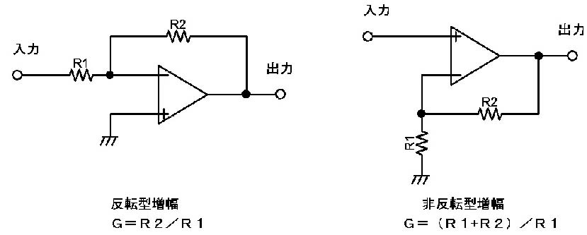 最近のオペアンプは、非常に高い周波数まで扱えるデバイスも増し、用途範囲が非常に広くなっています。電流帰還型は広帯域オペアンプ用として開発されてきましたが、今では電圧帰還型でも広帯域用のオペアンプも数多く出ています、基本的に電圧帰還型は使う利得設定によって帯域幅が変わりますが、電流帰還型は帯域幅の変化は殆どありません、但し、電流帰還型は使える周辺定数の幅が狭くこれを逸脱すると急に不安定動作となります、オペアンプに関する情報は、ネット上でいくらでも収集出来るため、特別記載する項目は殆どありません。ここでは下記の4項目について述べます。 ① 反転入力増幅/非反転入力増幅のどちらを選択するか ![]() どちらを選択して構成するかは、位相(極性)に関係する場合はどちらかに固定されますが、それ以外はどっちゃでも良い、しいて言えば次の違いくらいです。 ● 反転型は、前段の負荷がR1で決まり高入力インピーダンスの構成はとれない、非反転型は 高入力インピーダンスの構成がとれバイアス抵抗値で左右される。 ● 反転型は、R1=R2で利得=1(0dB)で、R1>R2でマイナスdB、R1<R2でプラスdBとな り、-dB~+dBの用途に使用します、R1/R2に特性を持たせ(C/R構成)たり、つまりフィル ター回路やサーボ回路のループフィルター等が最適です。非反転型は、R1=∞で利得=1 (0dB)で、マイナスdBの利得構成は出来ない。 ② オペアンプのオフセット電圧 デバイス固有のオフセット値は、ICの仕様で決まっていますが、増幅回路として構成した場合に周辺定数や利得値の設定により出力に現れるオフセット値は大きく左右されます。FET入力の場合問題とならないが、デバイスがバイポーラーの場合にバイアス電流がオフセット値のきっかけとなります。 ![]() オペアンプのバイアス電流は、各入力端子からGND(外側)へ向かって流れバイアス電流値はICのスペックで規定されています。この電流はR1とR3を流れます、つまり、各入力端子にこの電流値による電圧が発生します。オペアンプの2つの入力端子は差動入力となっているため、入力端子に電圧が発生したとしても、反転端子と非反転端子で同じ電圧値であれば差動されて、出力には現れず問題とはなりません。しかし、この値が異なれば差分が増幅されて出力に現れます。(特に増幅度が大きいほど)このことから既にお判りと思いますが、周辺定数によるオフセット値の影響をなくすには、R1=R3で構成することが前提となります。又、R1とR3の値が大きい程、影響が出ます。実際にはこの条件を守るのも困難な場合が多々あります現実的に出力のオフセット値が問題となる場合は、入力回路でオフセットキャンセル回路を設ける必要があります。 ③ 増幅回路の帯域 オペアンプを使った増幅回路では、ICの仕様項目にGB積(ゲイン・バンド幅)の数値が記載されてありますが、よく誤解されるのが、例えばGB積=150MHzと記載してあると、本ICは150MHzまで使えると解釈される方がおられますが、GB積はGain=1倍の時を規定しているのであって、利得の大/小によって帯域は変わります。例えば電圧帰還型ICを使って、上の反転型増幅器を作った場合、R1=1KΩ R2=2KΩで2倍の利得で構成とした場合は帯域=GB/(1+G)=150MHz/(1+2)=50MHz の帯域となります。 R2=3KΩとし、3倍の利得で構成した場合は 帯域=150MHz/(1+3)=37.5MHz の帯域となります。逆に帯域を意識して設計する場合もあります。