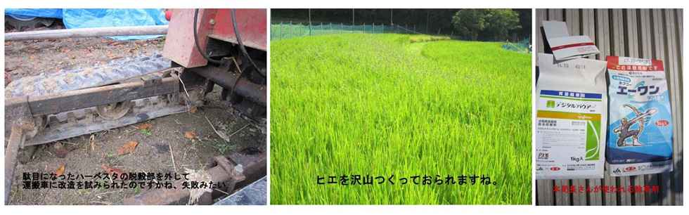 私と似た広さの稲作を営んでおられますが、この方の農機具は私のと比較すると桁が違います。入手方法は中古ばかり購入されていますが、一度、FBな農機具を紹介していただきたいものです。 ハーベスターの脱穀部を外し、運搬車にトライされたみたいですが失敗。りっぱななヒエを育てておられますね。本局長さんが使用されている除草剤。 ![]() |