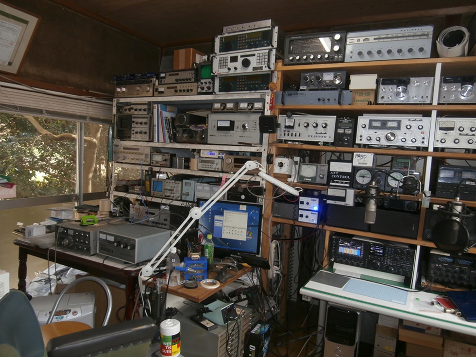 メイン機は、TS-990/FTDX9000です、裏に各種リニアアンプがあります。FTDX9000は以前、雷でTS-950が破壊され保険で代替え品として入手されたそうです。 ![]() |
