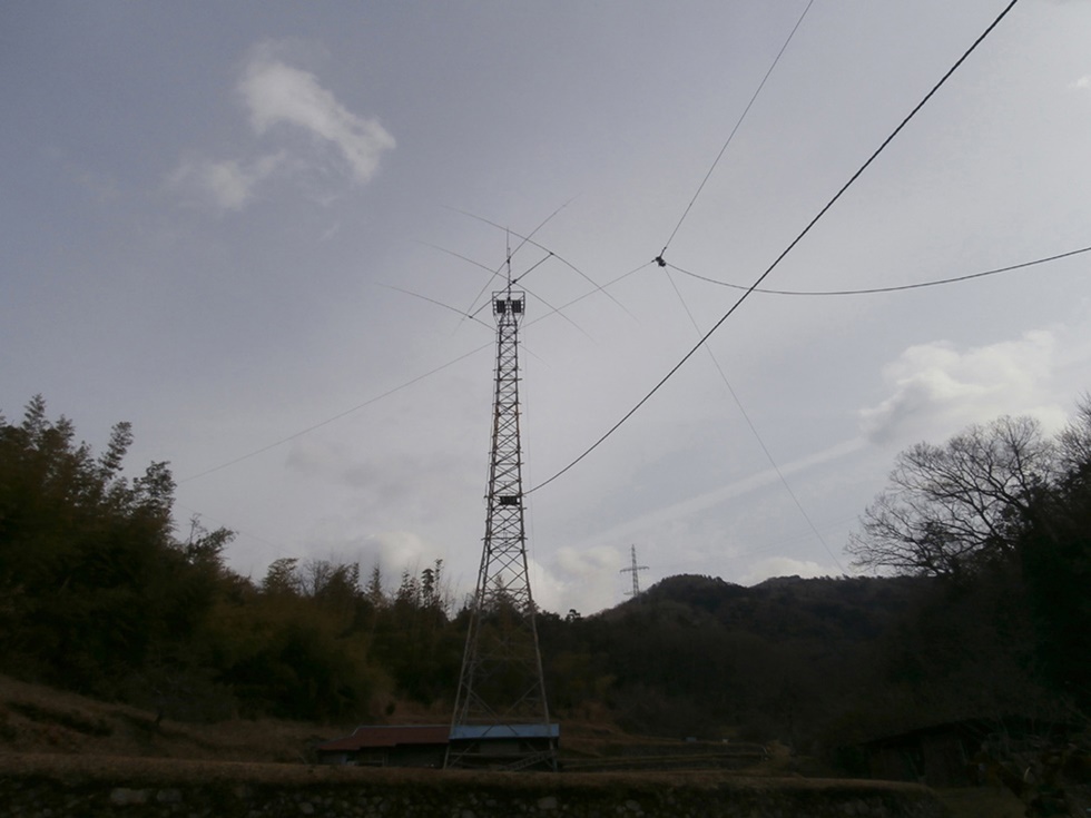 40mのタワーは、中国電力の不要鉄塔を譲り受け自分で全て組み上げされたそうです。7MHz-3エレフルサイズ+CD-78L、 下に3.5MHzワイヤーループアンテナ。 ![]() |