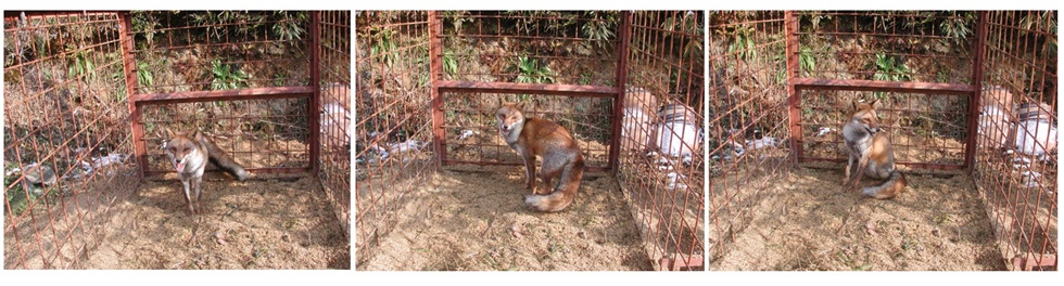 イノシシ捕獲籠にキツネ君が入ったそうです。キツネは害を及ぼさないため、山へ開放されたそうです。 ![]() |