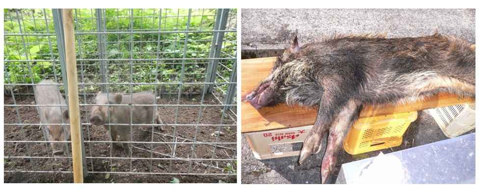●イノシシ捕獲隊の隊員になられているみたいですが、左側のこんなかわいいイノシシを捕獲して殺処分するのですかね。 ●H27年=6頭、H28年=0、H29年=1頭 右側=60Kg超えでした。 ![]() |