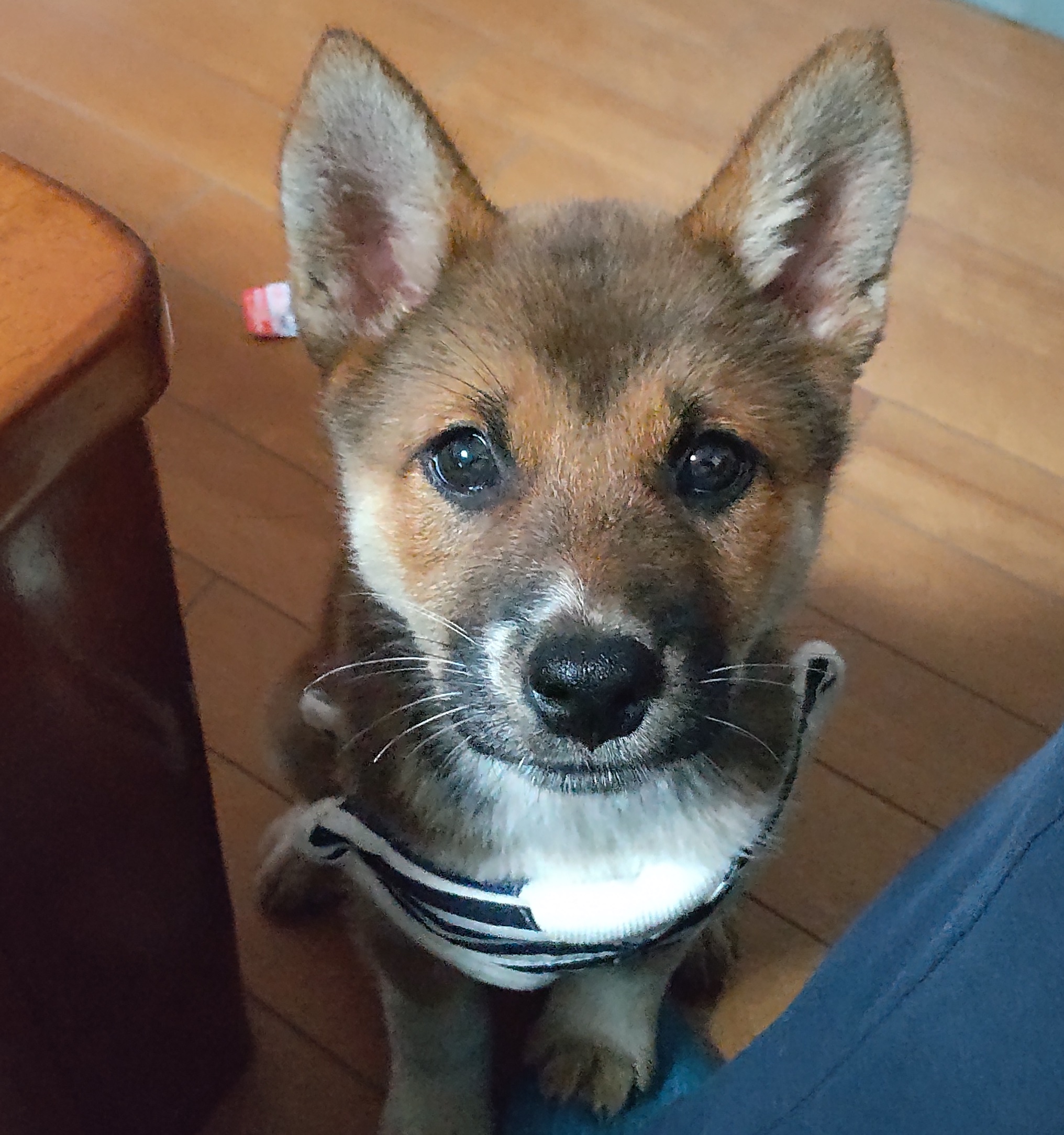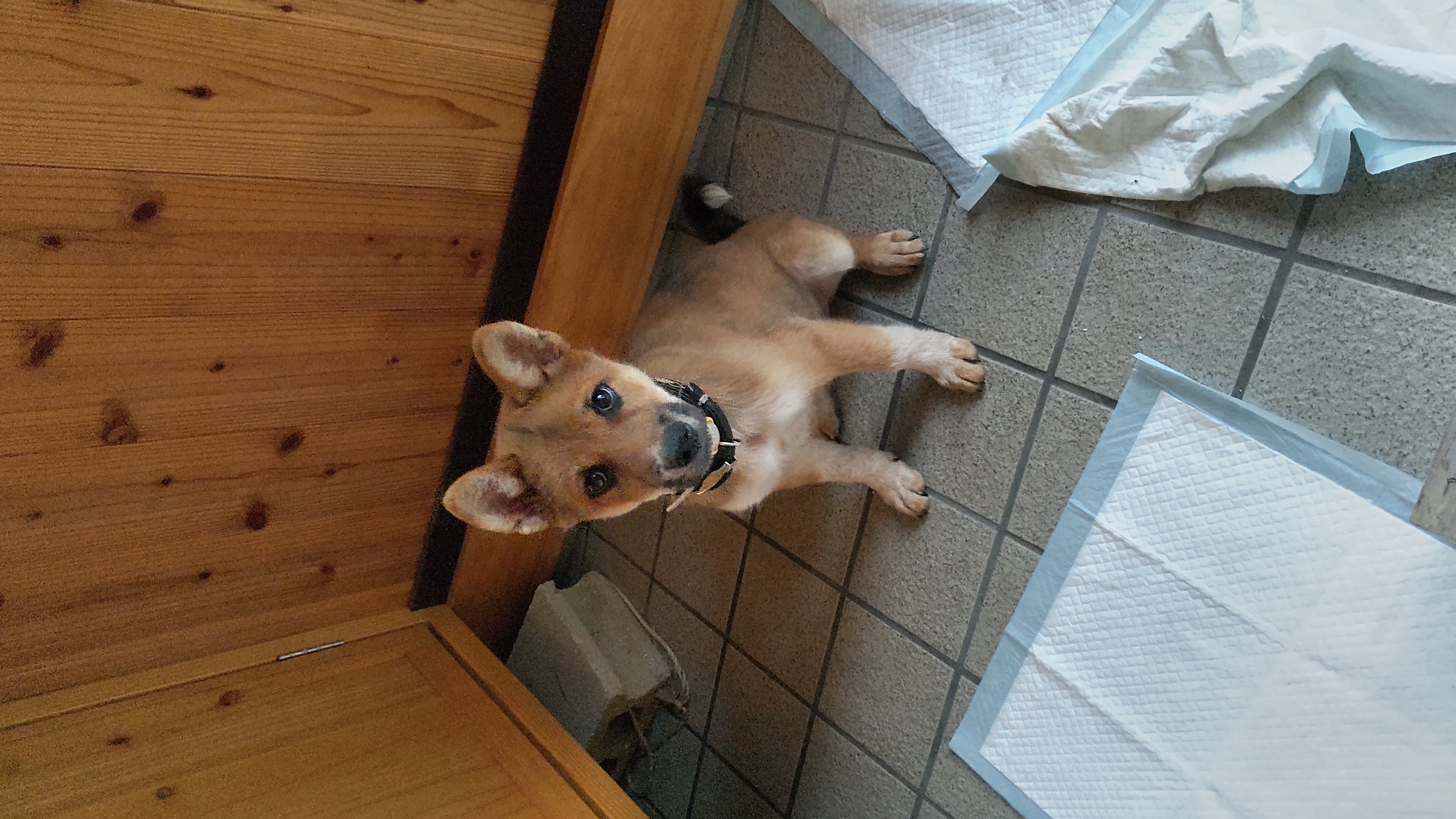 | 奈良県に住んでいる孫から犬を飼いたいと言う要望があり、奈良県で犬の譲渡会にてGETした犬は規律が厳しくて、”室内で飼わねばならない”とか”定期的に報告が義務付けられている”とかで、なかなか自分達の環境に合わない。私が住んでいる地域では、狂犬病注射/犬の行政登録/去勢手術までの報告は必要だが、室外での飼育もOK、以降は自由 と言うこともあって、2023年に犬の譲渡会があったので参加してみた。後日、紹介のあった動物愛護センターへ行ってみると、紹介のあった子犬より私好みの子犬がいたので、即座に譲渡を受けて持ち帰った。こちらではマイクロチップ埋め込みもしてあり、誕生日が2023年4月5日で、受け取ったのが2ケ月後の6月。私の方で3ケ月間しつけ教育をして現在は奈良の娘(孫達)の家にいる。 |