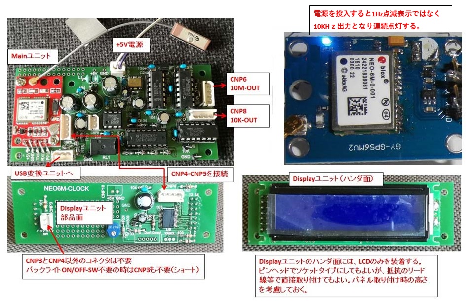 | 【NEO6M】 以前、GPSユニット(TU30/TU60)を使ったGPS基準信号発生器を制作しましたが、この時には、もっと以前は何万円もするGPSレシバー等を購入し、又はOCXOやルビジュウム等で高価な基準クロックを利用していたため、安い印象がありましたが、今回は’NEO6M’品番で、アマゾンやオークションで非常に安価(¥1680)に販売されています、最近ではネットで¥780で購入出来ます。私の知り合い各局さんも複数台購入され、私も2台購入しました。2台購入したのも理由が有りまして、1台購入して動作テストをしました。 ![]() 本ユニットはRS232Cの端子が出ており、USB変換ユニットを経由してPC接続し、PCにU-CenterをインストールすればGPSの測位の結果や地図との連携をモニターに表示することが出来ます。基本的にはPC接続しないで、電源(+5V)を印加しアンテナ接続していれば、約2分位で数個の衛星とリンクし、精度ある基準クロック1PPSが出力します。デフォルト状態では1PPS(1Hz)出力となります、コンフィグ設定で出力周波数は任意に設定出来ますが、安定に使用できる範囲としては10KHz位までです、それ以上だと安定さを欠きます、いずれにしても10KHz出力させるにはPC接続して出力が10KHzとなるようコンフィグ設定する必要があります。 ![]() ![]() 変換モジュールとNEO6Mを接続するには TX →RX RX →TX GND→GND PC-USB端子から電源供給する場合は、VCC→VCC 接続する、但し、パソコンからのVcc供給は私のパソコンで確認するかぎり、キャリア出力のC/Nがヒドイものでした、パソコン電源はNGです。 我々アマチュア無線家にとっては、使用している送受信機の基準クロック周波数としては15MHz〜30MHzのクロックを使用している機器が多く、これ等の基準クロックをPLL構成で作成するにはPLLのマスタークロックとして安定した10KHzが有れば可能です。 私が最初に購入した1台目は、青色ユニットでした。10KHz出力するために、PC接続しU-Centerを起動し出力信号としてDuty=50%の10KHz出力をコンフィグ設定しました、すると指定通り1PPS出力から10KHzが出力しました。本ユニットはコンフィグ設定状態、下記画面の’send’をクリックすると、EEPROMへ保存(SAVE)しておくと、次回起動時に設定状態が反映されるのが正常なはずです。 ![]() 電源を切って、バックアップ出来ている状態では問題無いのですが、バックアップが消えるとデフォルト状態の起動となり、1Hz出力となります、EEPROMが実装されているため、仕様としてはおかしいのでは? と思い、確認のため、電池(スーパーコン)を外し確かめたところ保存動作を行い、電源OFF→ONを短期間に行うとデフォルト状態に戻ります。知り合い各局に確認したところ、動作がまちまちで一度保存すれば電池が無くても常に保存状態で起動する (正常ユニット)のもあれば、私の1台目と同じデフォルト起動してしまう物と半/半位でした。EEPROMは、I2Cインターフェイスで結線されており、DATA-LINEをを確認してみましたが、保存時にも、電源ON起動時にも全くアクセスされておりません、EEPROMが搭載されていても全く使用されていない状態です。 そこで、もう1台購入してみました、今度は見た目の異なる赤いユニットを購入してみました、早速、電池を外しPC接続し10KHz出力に設定し、保存してみました、その後、電源OFF→ON(1週間後でも1ケ月後でも)で10KHz出力します、DATA-LINEも、保存時/電源起動時はアクセスされている事が確認出来ました。 仮に、保存バックアップ出来たとしてもPC接続は面倒だし、マスタークロックとして使用するにはアンテナ接続し電源投入でそのまま設置しておくだけで良いのです。スタンドアロン型式で構成するには、このユニットは電源起動時に無条件にクロック出力=10KHz(50%)を実行し、最低必要情報のみLCD表示させる構成とし、10MHz-VCXOを内蔵させ10KHzでロックさせ、出力クロックとして10MHz(2系統)、10KHz(2系統)出しました。又、10KHzクロックは全面SWで、NEO6M直接出力の10KHzか、10MHzを分周した10KHzを出力する切り替え機能を付けました。 |